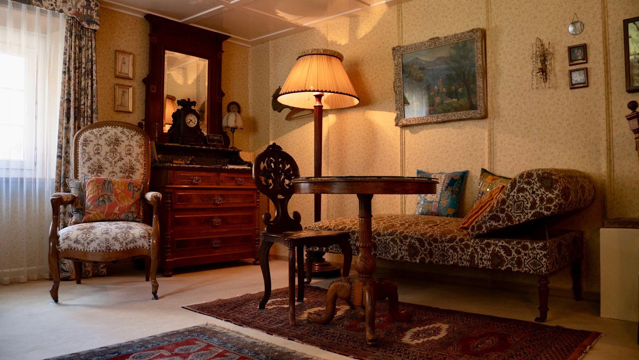 This charming and characteristic guest room remind you to the English lifestyle of the second half of the 19th century, the time when the archaeologists Howard Carter and the Earl of Carnarvon discovered excited Egypt and digged in the land. Also the time when Jugendstil became a fantastic and miraculous art at its best and the tourism in the Swiss Alps achieved an incomparable revival thanks to the spectaculare and eclectic sceneries of the mountains’ nature.